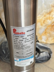 Tên sản phẩm: Bơm chìm giếng khơi Thương hiệu & Xuất xứ: Pamello - Trung Quốc Model: 4SVM100 Công suất: 0.75 Kw | 1.0 HP Điện áp : 1 pha / 220 V / 50 Hz Lưu lượng max: 2.7 m³/h Cột áp max: 58 m Họng xả: 27 mm Đường kính thân bơm: 76 mm Bảo hành: 12 tháng